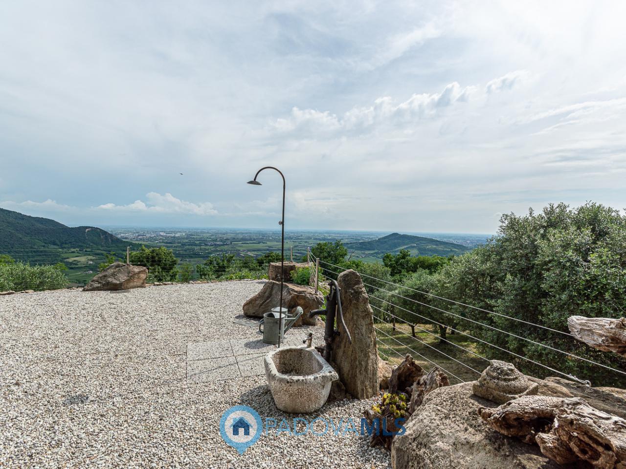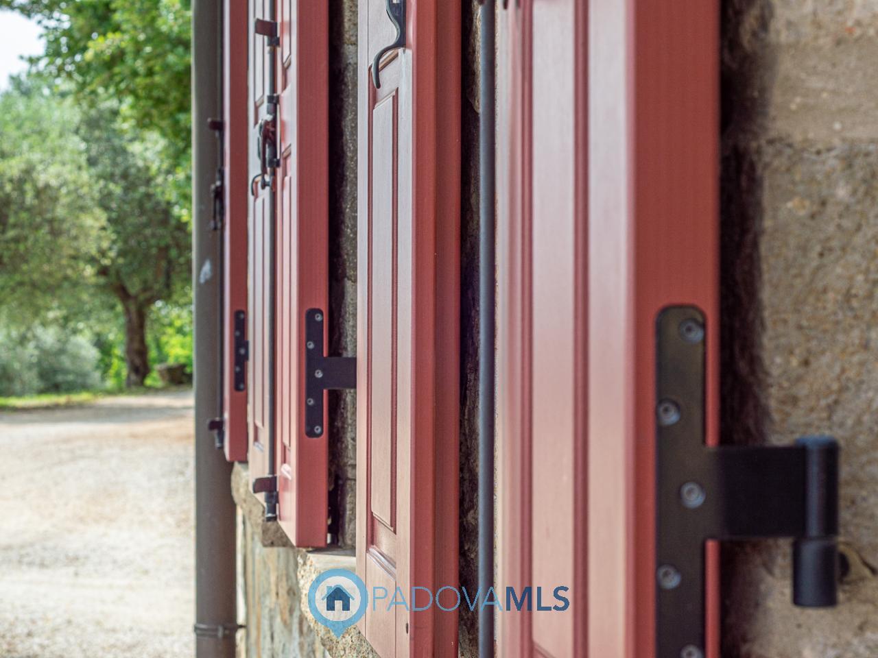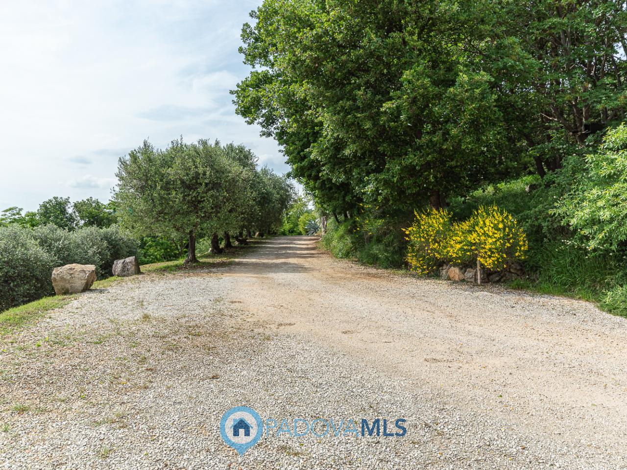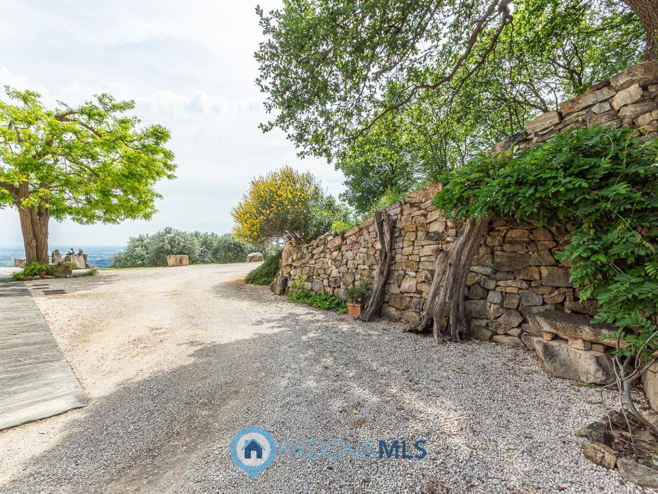 L’ingresso principale si apre su una vista spettacolare dei Colli Euganei, mentre l’ampio portico e il parco di 30.000 mq piantumato ad ulivi rendono la proprietà un’oasi di charme e riservatezza. Completa l’offerta un annesso rustico trasformabile in unità indipendente.