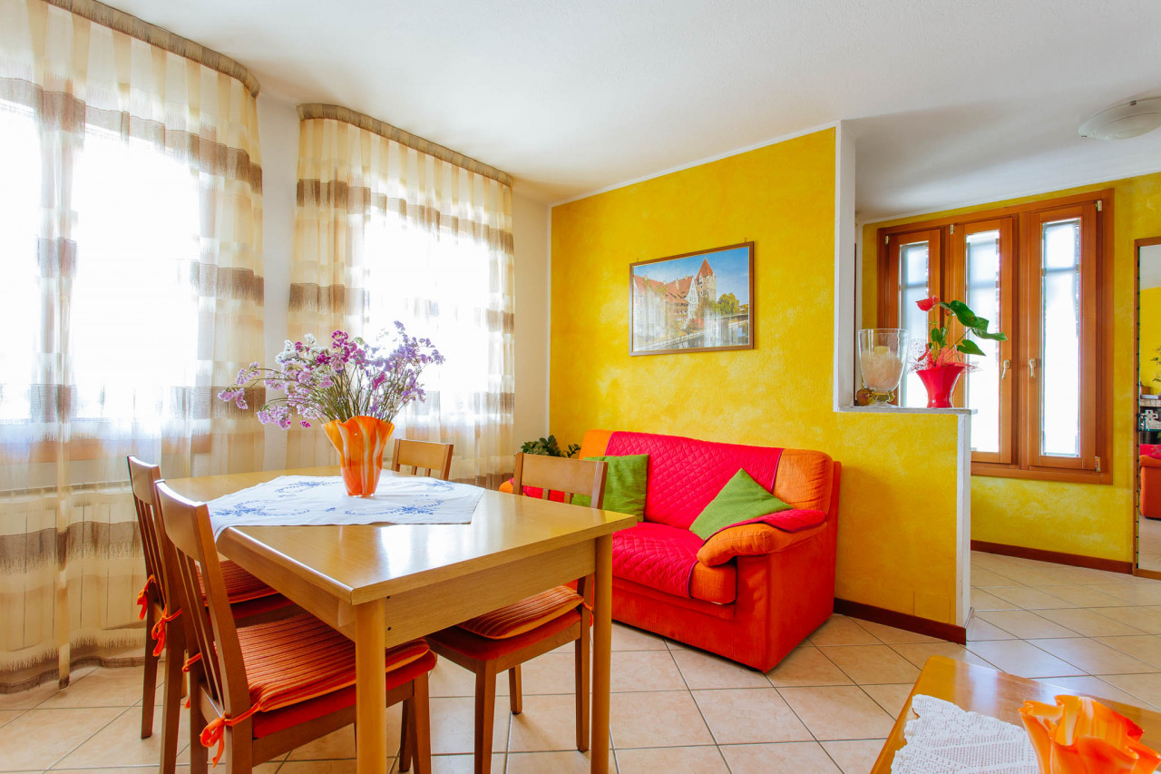 - ingresso, cucina, sala da pranzo, bagno e due camere.