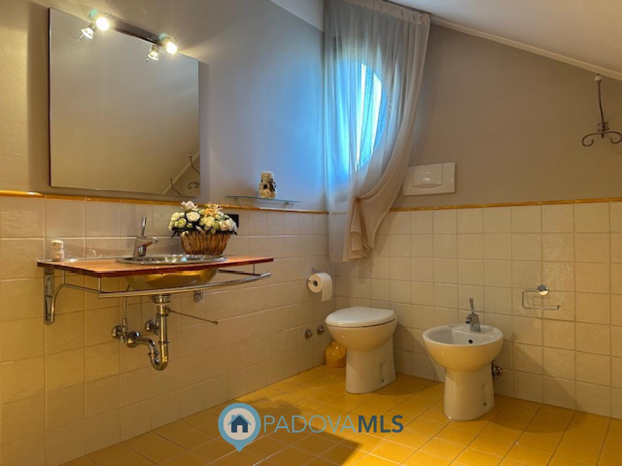 Vigodarzere, nel centro del paese ed in zona residenziale molto tranquilla, proponiamo una ampia porzione di bifamiliare di mq 271, esposta ad Est-Sud-Ovest, che si sviluppa su più livelli e così disposta: al piano terra troviamo l'ingresso, la cucina abitabile con affaccio nel porticato, soggiorno luminoso con ampia vetrata e con uscita sul giardino che contorna la casa su 3 lati ed è attrezzato con pompeiana arredata di tavolo e sedie, 1 wc;